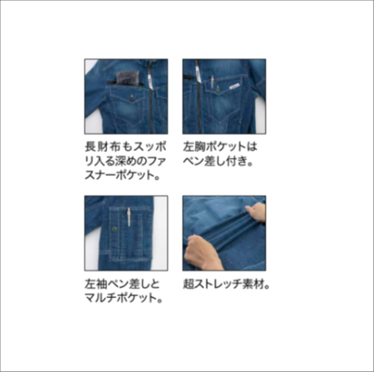S-LLサイズ 2814 長袖ブルゾン 現場服 XEBEC ジーベック ストレッチサマーデニム 春夏 吸汗性 吸湿性 冷感性 綿68%ポリエステル30%ポリウレタン2%