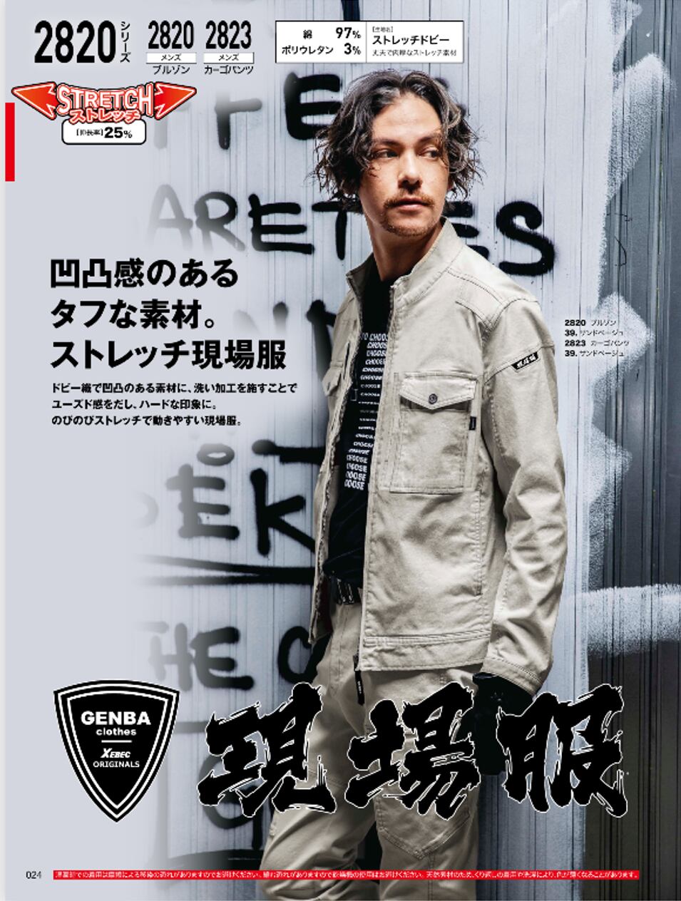 3Lサイズ 2820 ブルゾン 現場服 XEBEC ジーベック ストレッチ 肉厚 丈夫 洗い加工 綿97%ポリウレタン3%