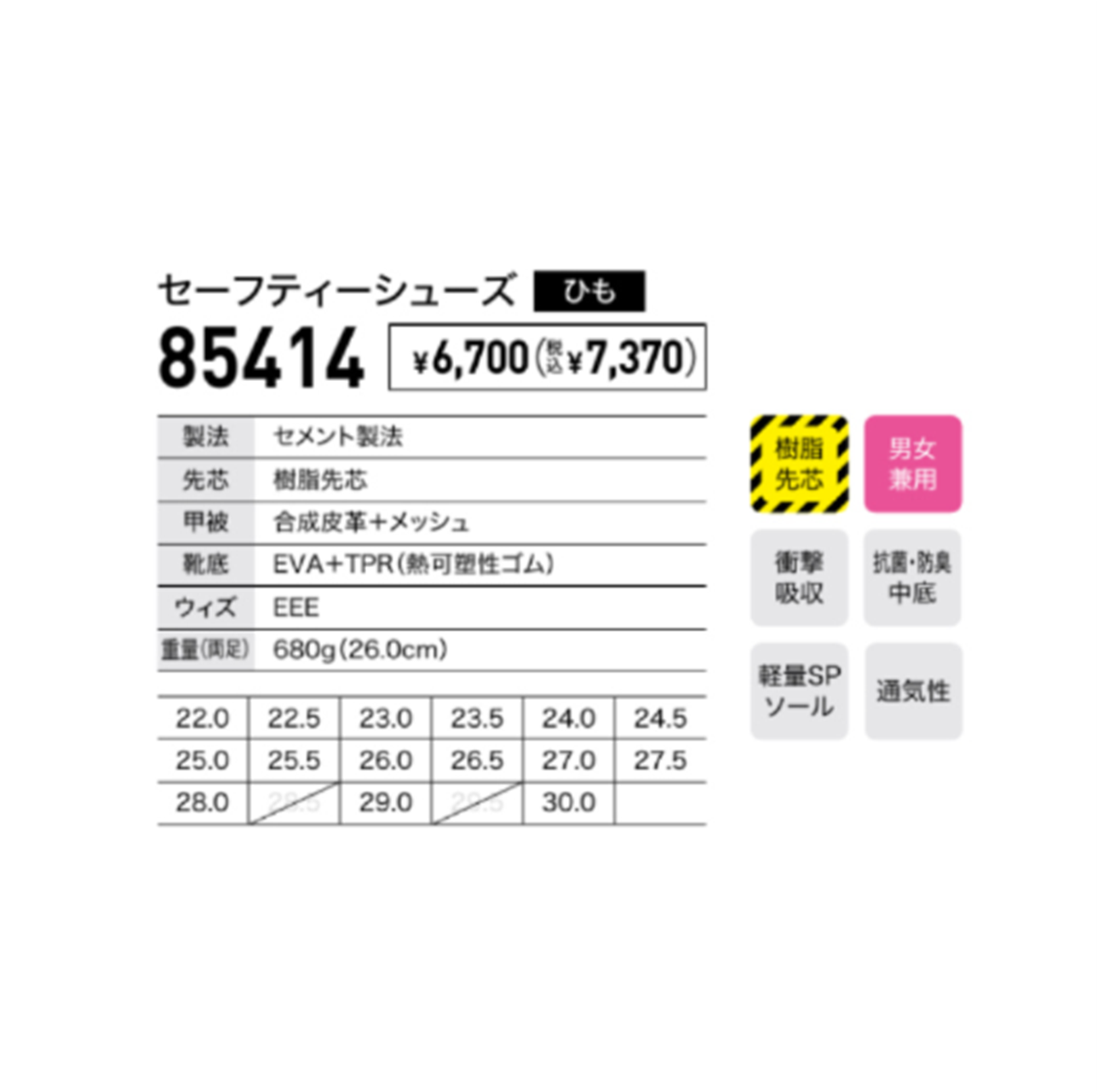 30cm 85414 セーフティーシューズ XEBEC ジーベック 樹脂先芯 軽量 通気性 反射材