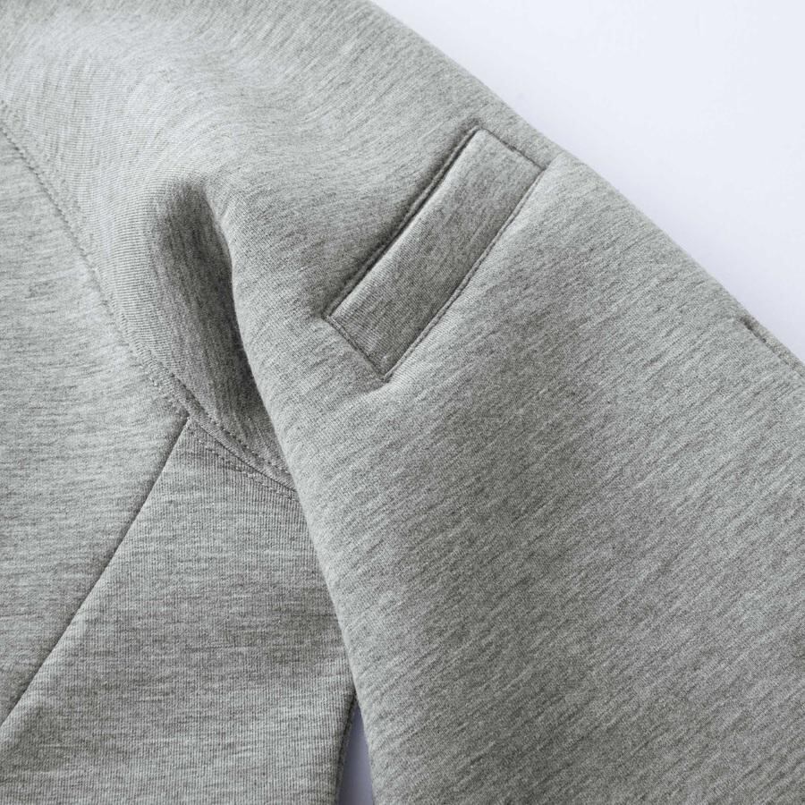 「飽きのこないシンプルデザインのフーディは首元にうれしいギミックを搭載」