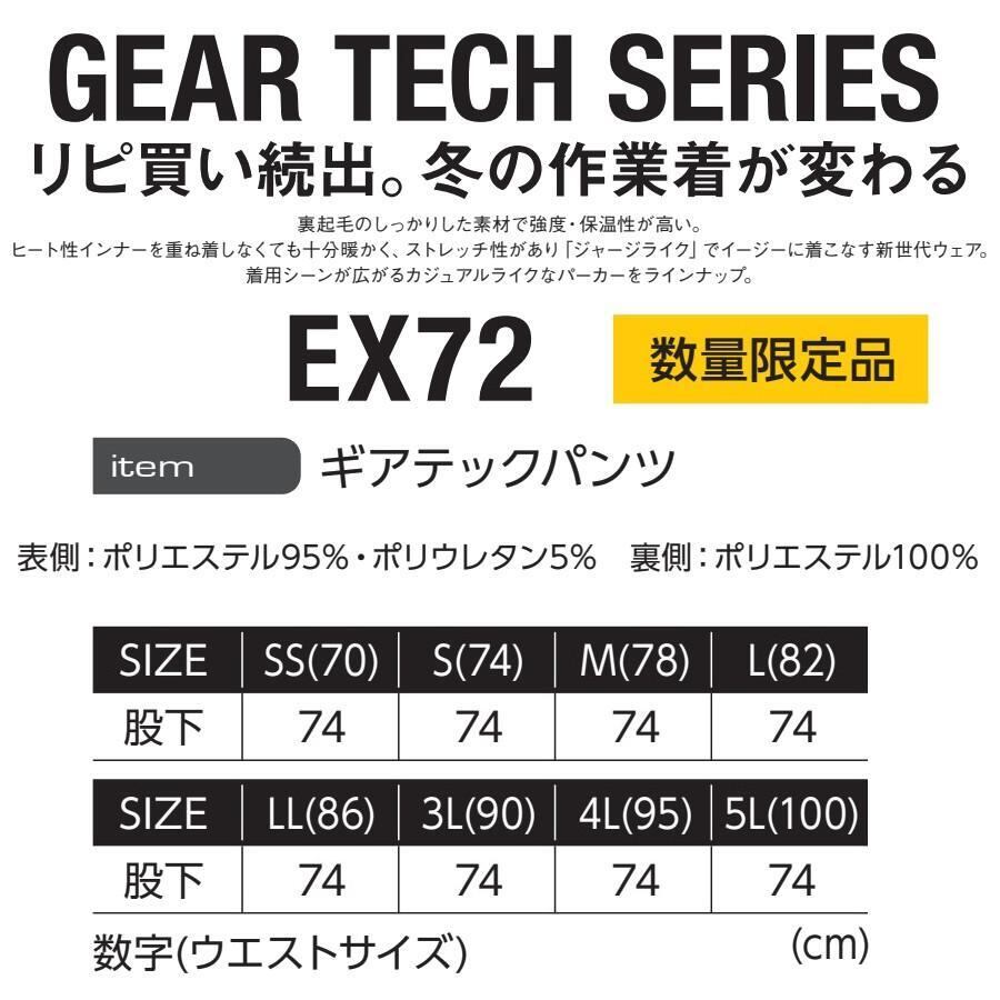 4L EX72 ギアテックパンツ EVENRIVER 作業服 秋冬用 ワークウェア ストレッチ性 保温性 裏起毛 防寒着 作業着 作業ズボン 防寒カーゴパンツ イーブンリバー
