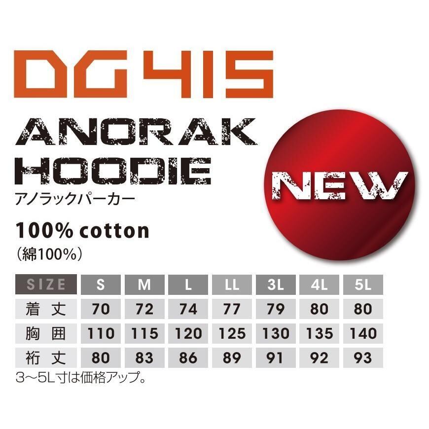 5Lサイズ DG415 アノラックパーカー D.GROW 綿100% ユニセックス 防寒 作業服 KURODARUMA 保温性 ヤッケ 軽防寒 アウトドア キャンプ ハイキング 火に強い 溶接