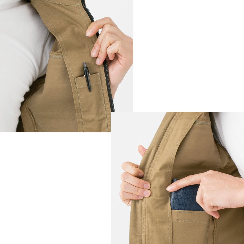 素材は綿を多く含む高密度のミニヘリンボン織りで様々なハードワークに十分耐えうる強度。