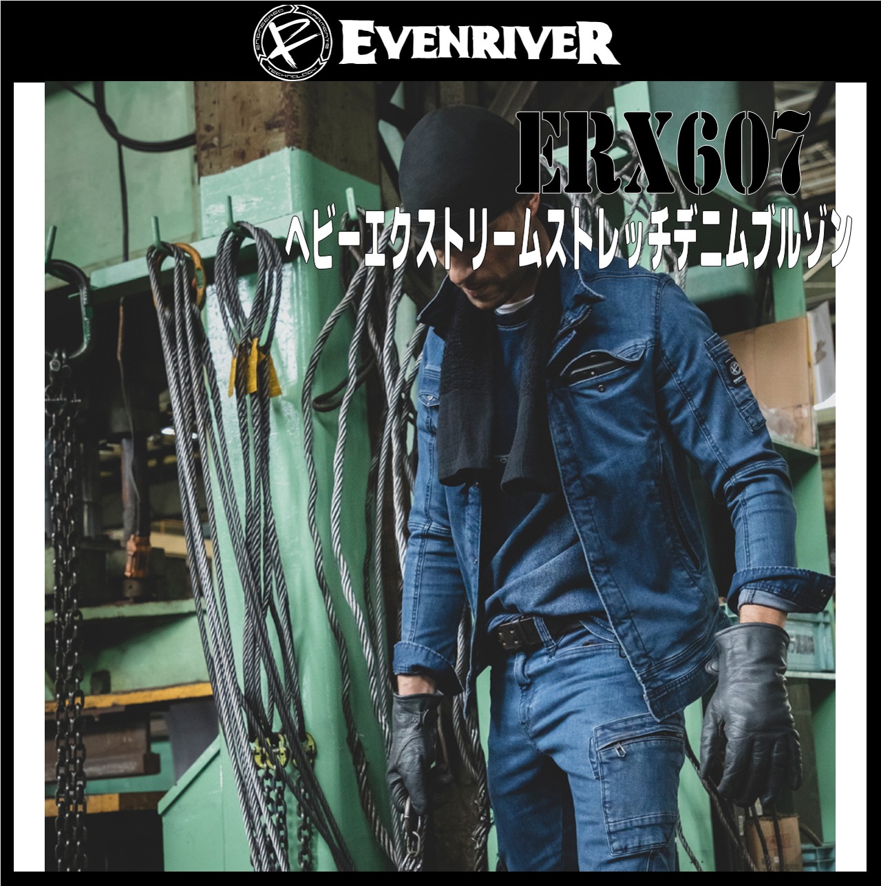3L ERX607 ヘビーエクストリームストレッチデニムブルゾン EVENRIVER 作業服 ストレッチ デニムウェア イーブンリバー オールシーズン 作業着 長袖 ジャケット