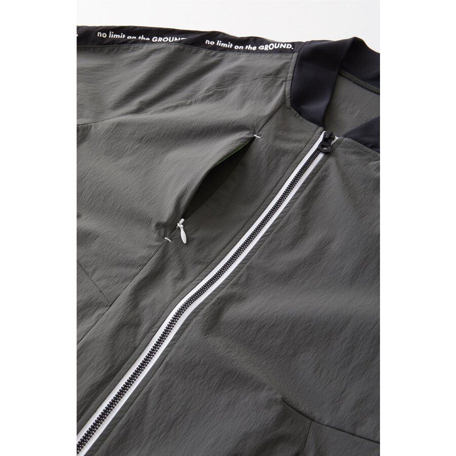 ストレッチ、冷感、 軽量の多機能性に加え、着用シーンを選ばないデザイン性も兼ね備えたスポーツテイストのブルゾン。