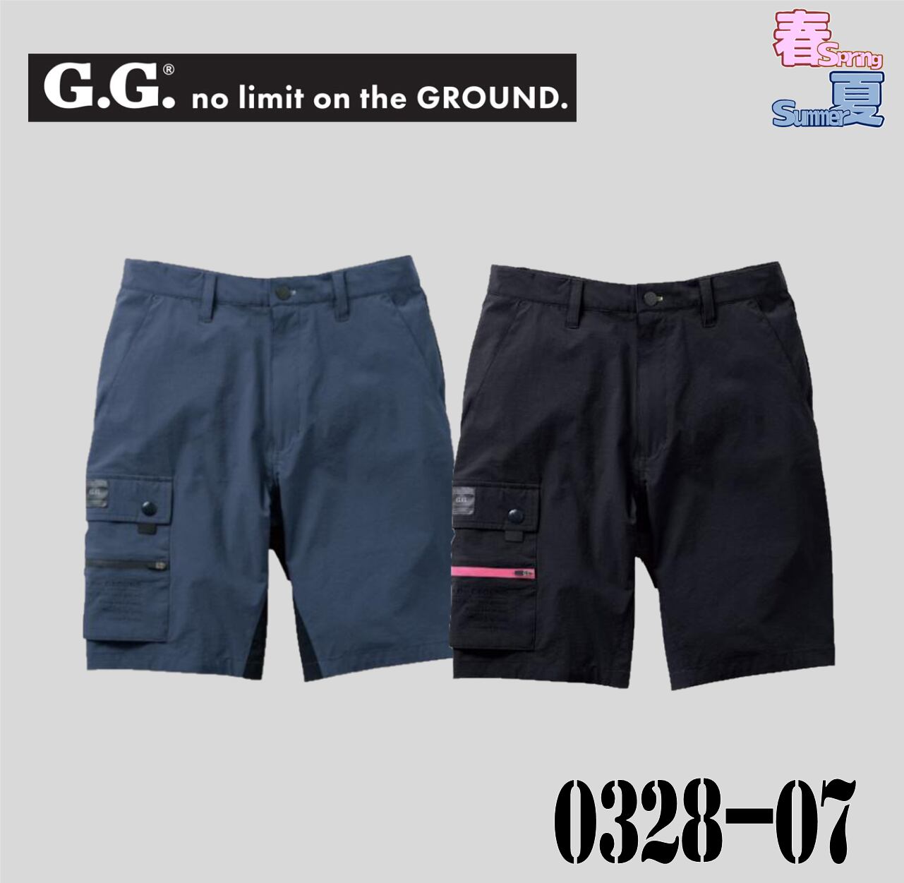 3L 0328-07 ハーフパンツ G.G. 作業服 夏用 接触冷感性 高視認性 吸汗速乾 消臭 軽量 ストレッチ 作業ズボン ショートカーゴパンツ ワークウェア 作業着 桑和