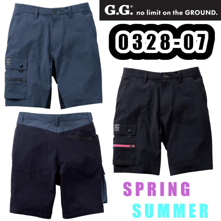 4L 0328-07 ハーフパンツ G.G. 作業服 夏用 接触冷感性 高視認性 吸汗速乾 消臭 軽量 ストレッチ 作業ズボン ショートカーゴパンツ ワークウェア 作業着 桑和