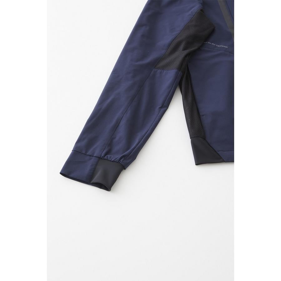 部分メッシュ生地の高通気性と部分冷感生地によるヒンヤリ感で春夏シーズンに最適な一着。
