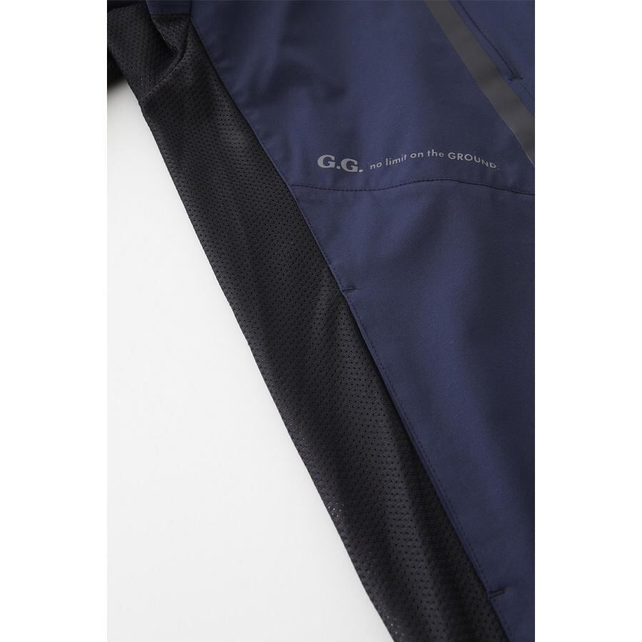部分メッシュ生地の高通気性と部分冷感生地によるヒンヤリ感で春夏シーズンに最適な一着。