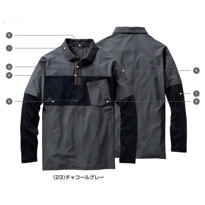 3L 7345-50 長袖ポロシャツ G.G. 作業服 高通気 消臭 吸汗速乾 ストレッチ 胸ポケット 襟付き シャツ レイヤード ワークウェア 夏用 作業着 返品交換不可