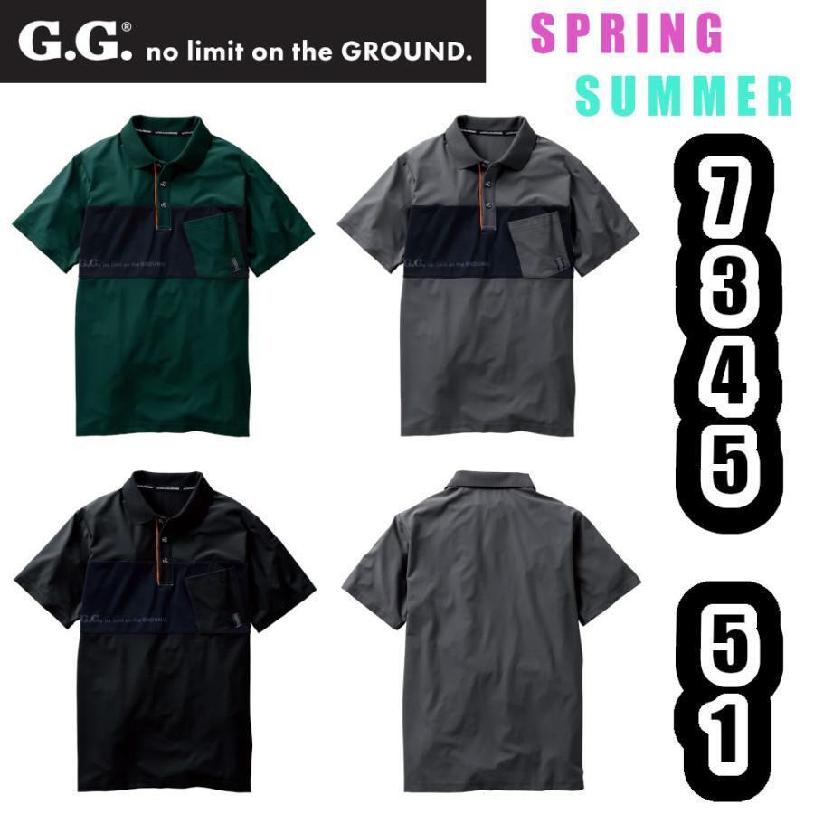 S-LL 7345-51 半袖ポロシャツ G.G. 作業服 高通気 消臭 吸汗速乾 ストレッチ 胸ポケット 襟付き シャツ ニット ワークウェア 夏用 作業着 SOWA 桑和