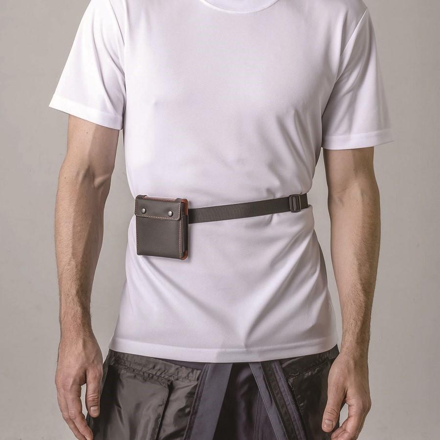 衣服内の風の通りを妨げない、バッテリー用付属ベルト付き。