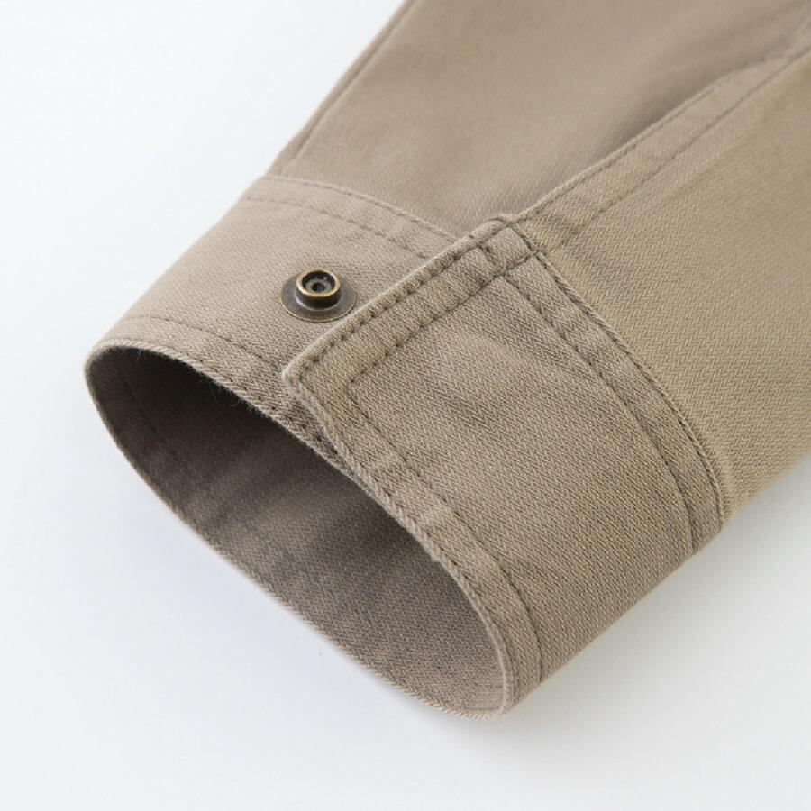 腰帯を無くし、裾部分にアジャスターボタンを施すことでお腹のふくらみでフロントが閉まらない場合でも、ボタンを外せば腹回りに余裕ができ閉めやすくなります。